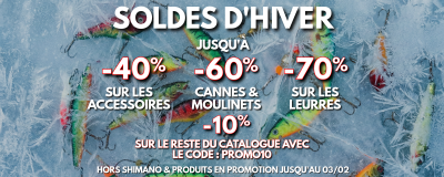 Les soldes d'hiver sont devenus un incontournable du début d'année. Vous retrouverez bien entendu sur le site les meilleures promos pour l'occasion au sein de notre partie du site dédié aux soldes pêche. Au programme, économies sur des milliers de produits, cannes, leurres, moulinets, vêtements et même float tube !