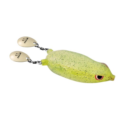 El señuelo vinilo Bronzeye Blade 65 de la marca Spro, una rana anti-hierba con paleta perfecta para las zonas congestionadas.