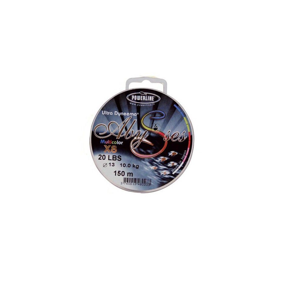 Multicoloured Abysses braid from Powerline, available in 2 pack sizes and diameters from 7 to 48 hundredths.