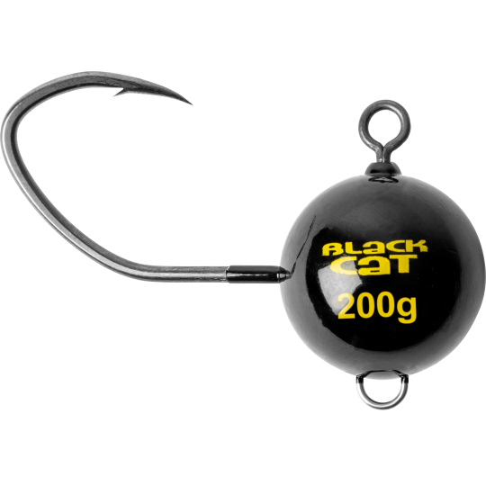 La monture Mega Fireball Noire de la marque Black Cat, une tête plombée spécifique parfaite pour la pêche du silure au vif en verticale.